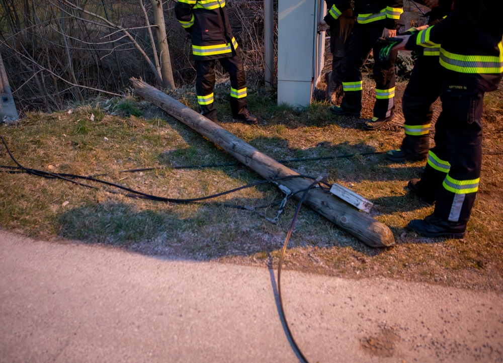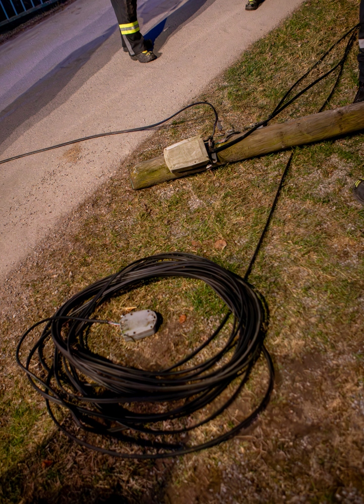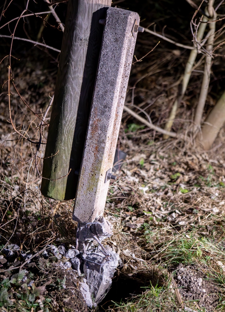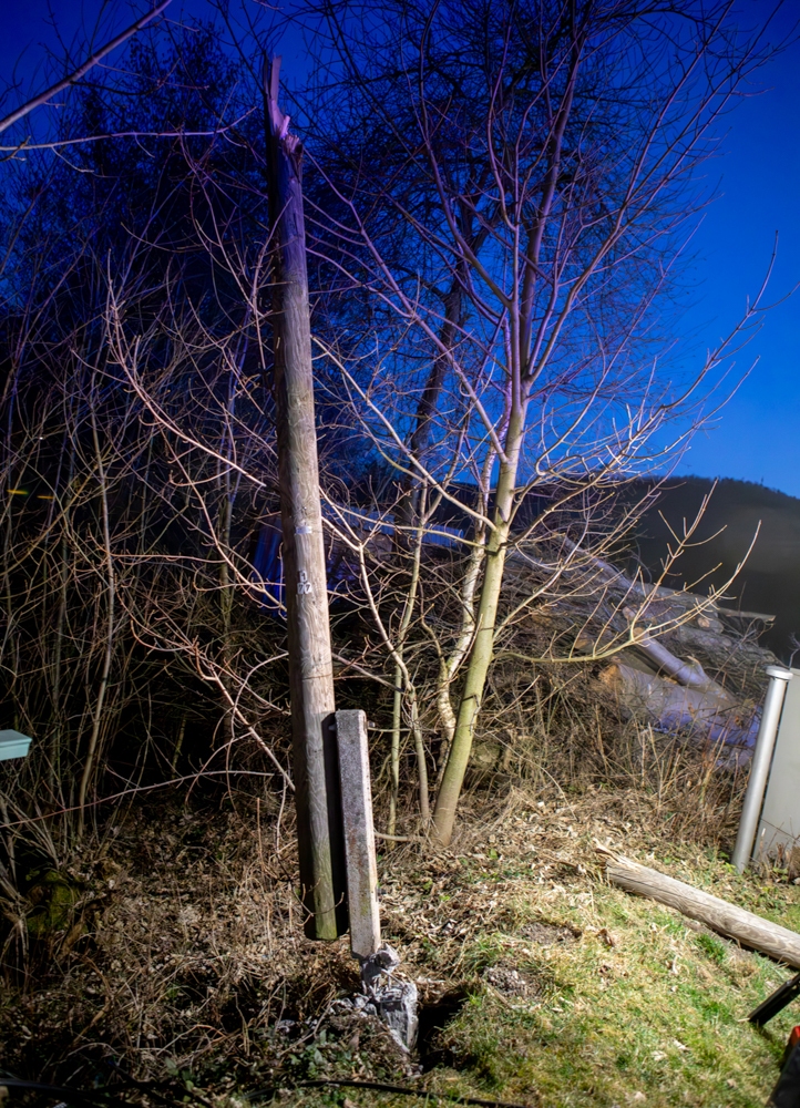 Hier wurde der Mast in der Hälfte und das Kabel vollständig abgerissen. Nach Freigabe der Polizei konnte auch diese Schadstelle entsprechend abgearbeitet und die Schäden beseitigt werden.